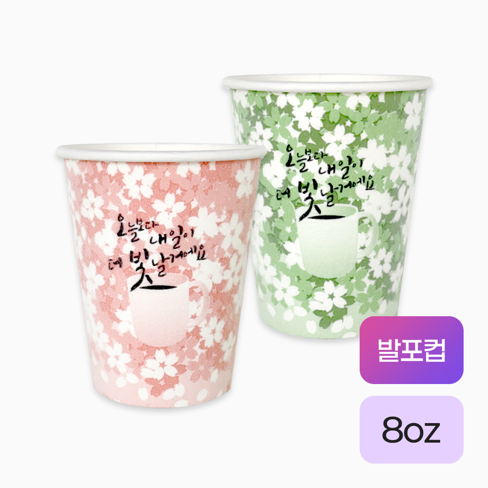 - 천연펄프 발포컵 벚꽃 핑크/그린 8온스 (1,000개)